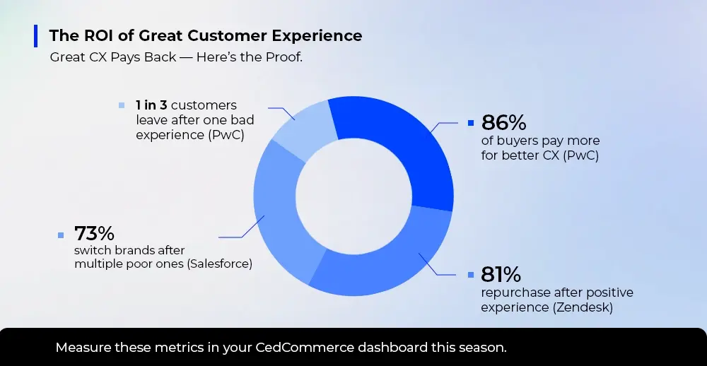 In 2025, customer experience (CX) isn’t a differentiator—it’s the decision-maker. A report by PwC found that 29% of consumers say they stopped purchasing from a brand because of poor CX either online or in-person. Hence, CX remains the dominant factor influencing purchase decisions in the 2025 festive season. eCommerce sellers need a forward-thinking, data-driven, and highly actionable CX strategy that leverages current consumer trends, advanced technology, and cross-channel personalization to drive sales, foster loyalty, and reduce churn.