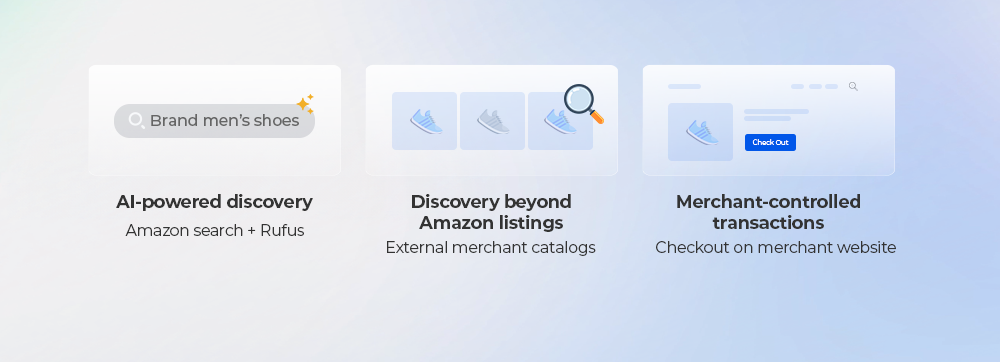 This model works best for businesses that already operate an eCommerce storefront and want to expand product visibility through Amazon’s search and AI-powered discovery experience.
